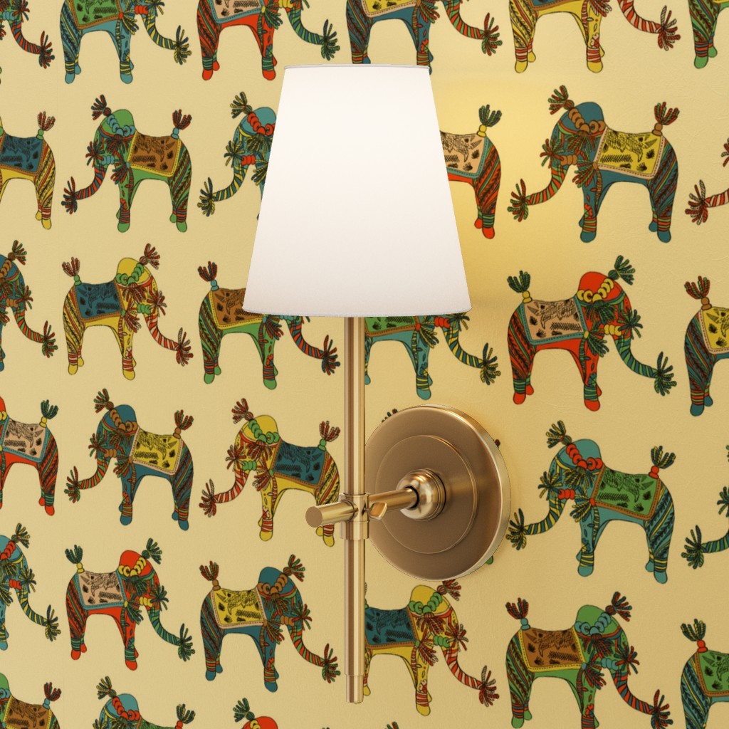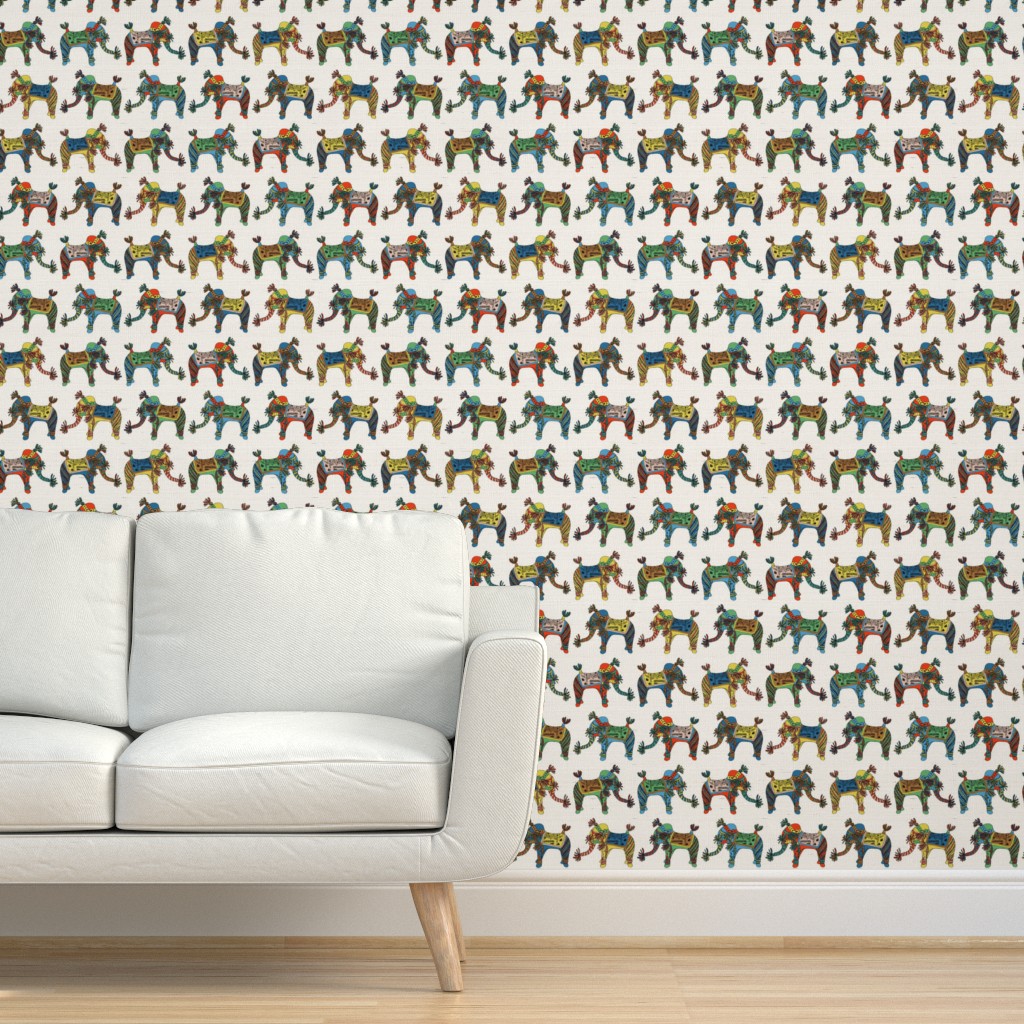 Hand-painted Happy Elephant print inspired by a little, tasselled, hand-made elephant from a family collection.
